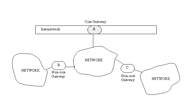 A core gateway is one that resides as an interface between a network and the internetwork. A non-core gateway is between two LANs that are not connected to the larger internetwork.