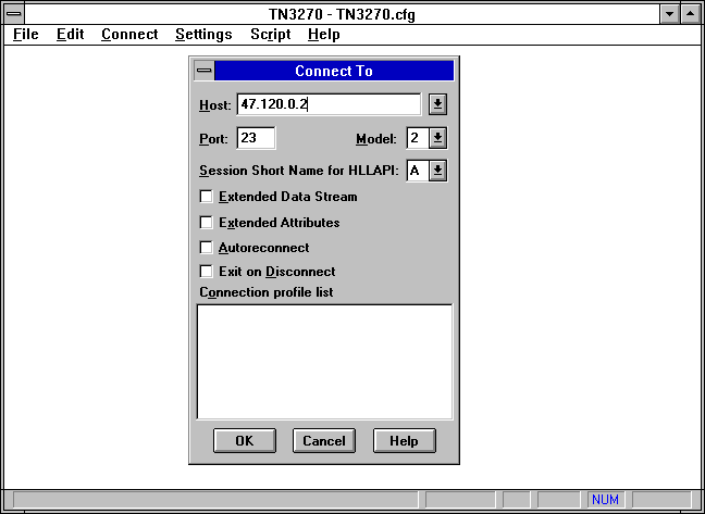 Figure 6.3. Using Telnet from a Windows for Workgroups machine.
